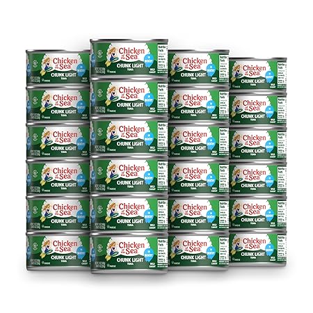 Chicken of the Sea Wild Caught Chunk Light Tuna, 12 Ounce Cans, 24-Count – High Protein 100% Classic Chunk Tuna in Water – Delicious, Easy, Nutritious Ready to Eat Meals
