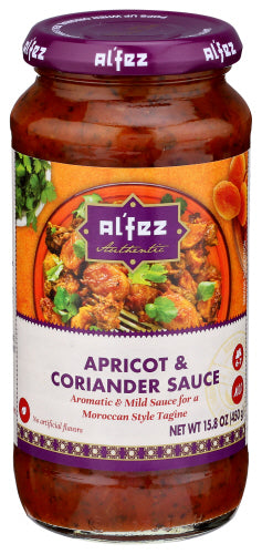 Embark on a culinary journey to Morocco with Al'Fez Apricot & Coriander Tagine Sauce. This 15.8 oz (450g) jar holds a rich, tomato-based Moroccan tagine sauce infused with the delightful combination of sweet apricots and fresh coriander. It's expertly blended with aromatic spices, garlic, and a touch of lemon, creating a uniquely sweet and aromatic sauce that brings authentic Middle Eastern flavors right to your kitchen.