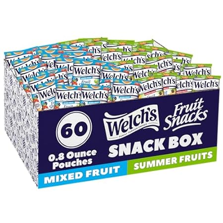 Welch's Fruit Snacks, Mixed Fruit & Summer Fruits Variety Pack, Great for School Lunches, Bulk Pack, Individual Single Serve Bags, 0.8 oz (Pack of 60)