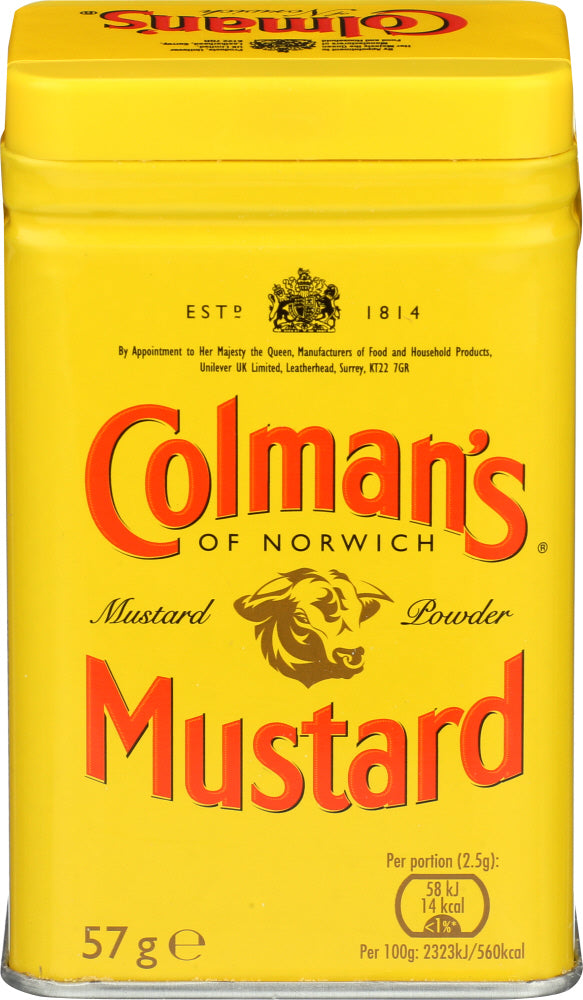 Elevate your culinary creations with Colman’s mustard powder, the iconic double superfine mustard renowned since 1814. This English mustard powder comes in a convenient 57 g tin, perfect for home cooks and gourmet chefs alike. Made from 100% pure mustard flour, this gourmet mustard powder delivers bold, authentic British heat and flavor—ideal for enthusiasts of Colman's 57 g mustard.
